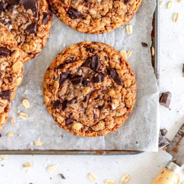 Make these cookies! I just did and they’re amazing. Crisp edge chewy center and the flavor is 🔥. The chocolate plays so nicely with the toasted oats, browned butter is always a plus! These are going in my cookie rotation.