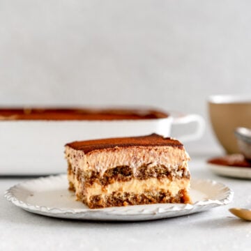 Hi hi! Just popping in to share this super easy tiramisu recipe with you! This is essentially a big boy version of the small batch tiramisu that is super popular on my website. While making a small homemade tiramisu is great, sometimes you want a larger sized one, and don't want to do the maths. I got you.