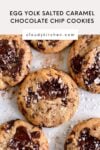 These Small Batch Egg Yolk Chocolate Chip Cookies are a brown butter chocolate chip cookie, filled with homemade salted caramel chunks. These Egg Yolk Cookies use two egg yolks, which gives an amazing chew to the cookies. This small batch cookie recipe only makes 12 cookies, and is the perfect recipe if you are looking for a fun way to use up egg yolks!