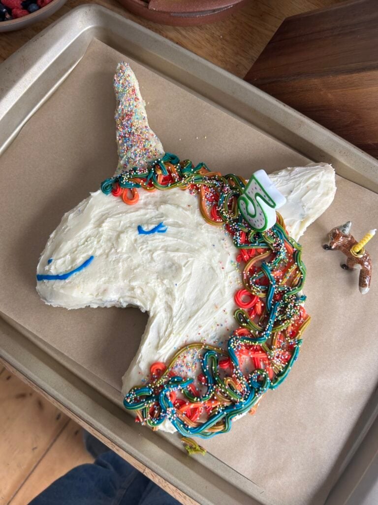I used this recipe for my son’s small birthday party! He requested a rainbow unicorn cake and this was perfect. I baked in a round pan, did 1.5x the icing (without raspberry) and it made the perfect amount for 6 kids and 10 adults