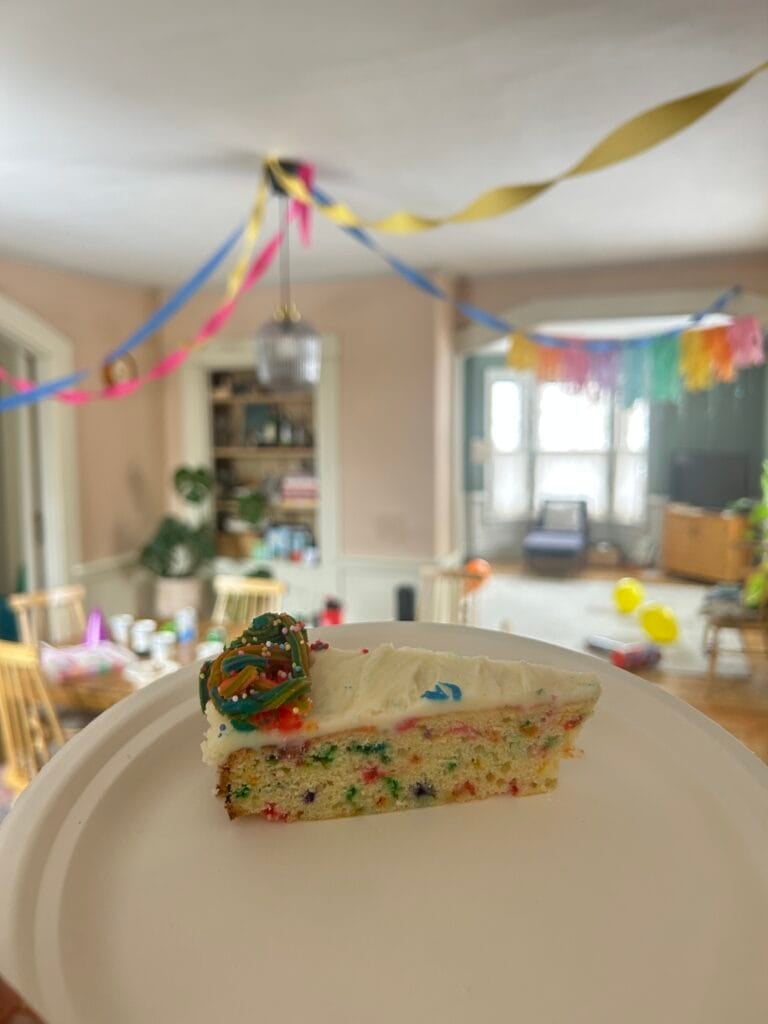 Made this for a quarantine wedding brunch for something cute and fun! Unfortunately French sprinkles are not colourful enough and basically dissolved in the batter, so it didn’t have the colour effect, but cake itself was delish! Much appreciated by the newlyweds!