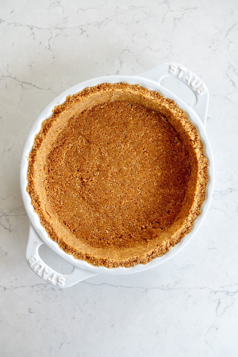 This is the perfect recipe for a super easy homemade graham cracker crust. Made with graham cracker crumbs and toasty brown butter, This post walks you through a step by step method of how to make a quick graham cracker crust, and all the tips and tricks for a perfectly shaped crumb crust that holds its shape when used for a pie. This post also includes alternatives to graham crackers!