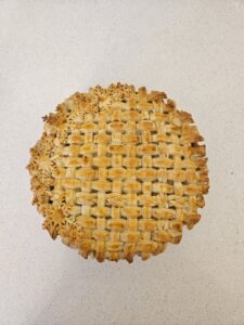 This recipe makes enough pie crust for two single crust pies, or a basic double crust pie with a basic lattice. If you are making a pie where you want a more detailed top crust, I suggest making a 1.5 batch of this recipe to ensure you have enough. Any leftover pie crust can be wrapped in plastic and kept in the fridge or freezer for another time.