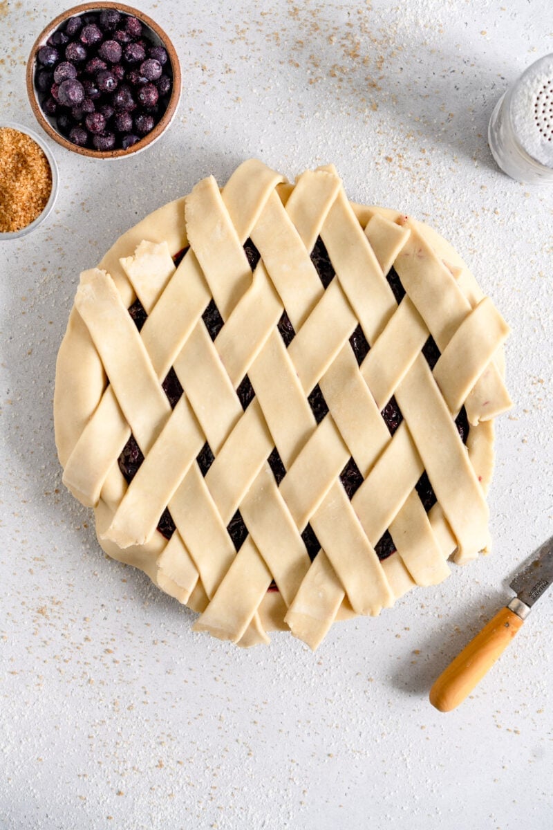 It settles well into the pie pan, and gives a lovely sturdy bottom crust. This is the go to method that I have been using for years and the recipe that I use to make detailed lattices. It works great for blind baking, par baking, and for baking sturdy double crust pies.