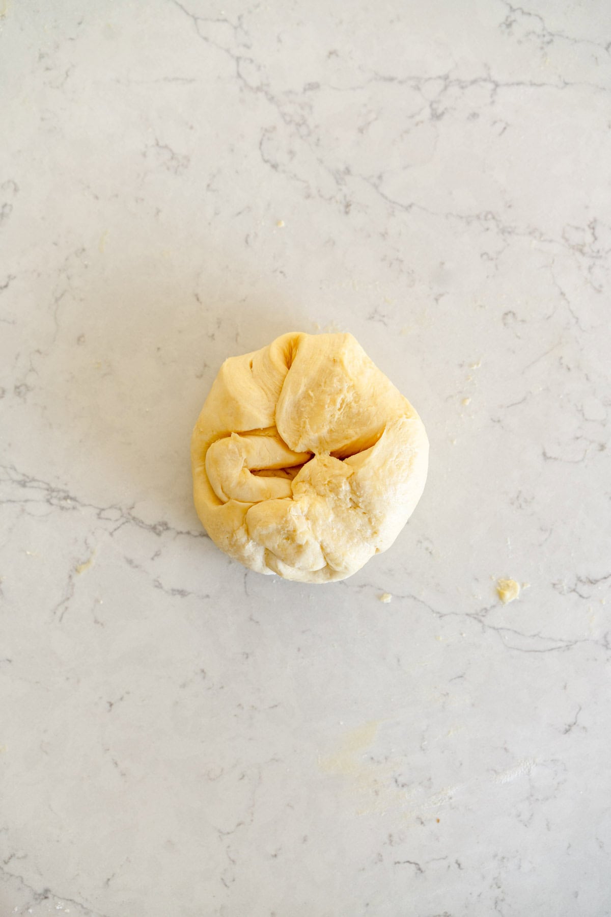 Repeat this process two more times until you have done three folds of the dough. If at any point it feels like the dough is warming up too much, you can wrap it and pop it back in the fridge for 10-15 minutes but I find that as long as I start working with the dough as soon as it is out of the fridge, I can do the folds all in one go.