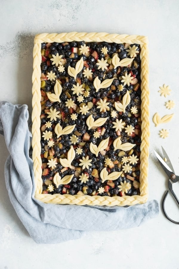 Blueberry, raspberry and white currant pie with buckwheat crust