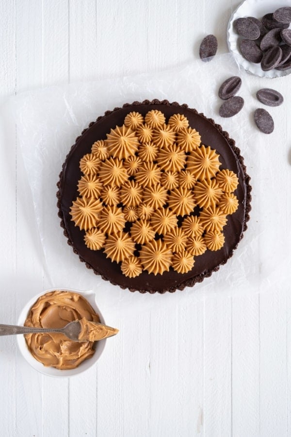 Dark Chocolate Peanut Butter Tart with Peanut Butter Whipped Cream