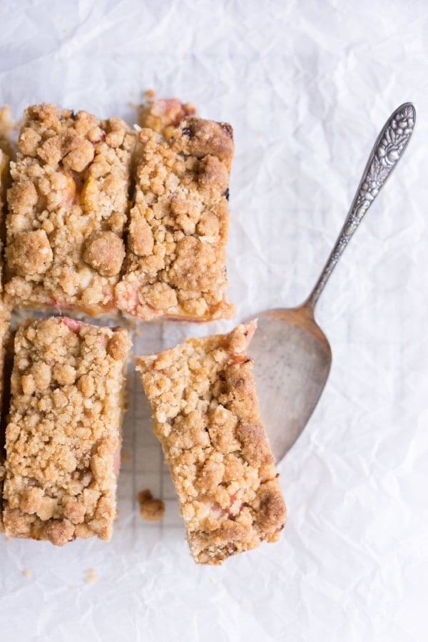 Laminated Brioche Cinnamon Buns with Peach Compote and Brown Butter Streusel