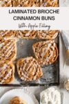Laminated Brioche Cinnamon Buns with Spiced Apple and Oaty Streusel. These laminated cinnamon buns have a spiced brioche, a cooked spiced apple filling and a chewy oaty streusel. These are a fun variation on the classic brioche bun, and the lamination provides delicious layers of flavour.