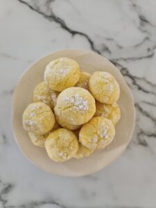 These lemon crinkle cookies are slightly thicker and chewier than their chocolate counterparts. I love them a lot and I hope that you do too! I love making recipes with fresh lemon so these are great to add into rotation.
