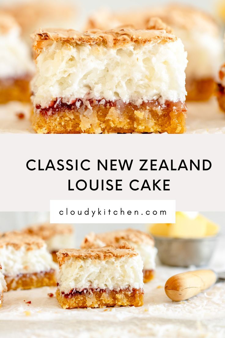 Louise cake is a super delicious homemade slice (or bar) recipe, made up of a buttery vanilla shortbread base, a layer of raspberry jam, then a coconut meringue topping. The whole thing gets assembled before it is baked, which makes things super easy, although there are a few components to it. You really can't beat baked from scratch.