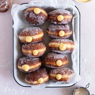 Malasadas are Portuguese style doughnuts - it was my first time making them, but definitely won’t be my last. The process is a little different to making brioche doughnuts, in that the dough is much sweeter and softer than brioche, which results in the softest, most pillowy doughnuts. It uses evaporated milk, which only adds to the amazing flavour. I’m totally obsessed with the texture. Alana’s recipe includes a pastry cream filling, spiked with Liliko’i juice, which is tart and flavourful, and goes perfectly with the sugar rolled doughnuts. These would be perfect for a party, or for feeding a crowd, or for whenever you feel the need to make some incredible doughnuts.