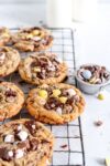 The tips work especially well for recipes like these malted milk chocolate chip cookies which have chunky mix-ins such as mini eggs.