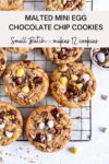 These malted chocolate chip cookies are a delicious twist on classic chocolate chip cookies. The addition of malted milk powder adds an amazing depth of flavour! Packed with dark chocolate chunks and chopped mini eggs, this is a small batch baking recipe that makes 12 chewy cookies, with no mixer needed. You can also freeze the dough to bake off just a few cookies at a time.
