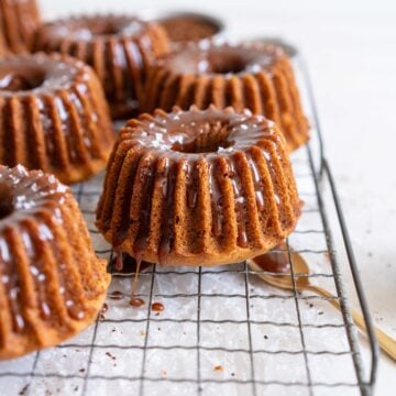 Mini Banana Bundt Cakes with Coffee Salted Caramel