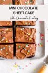 Follow these simple steps at home to make this easy homemade recipe for moist mini chocolate cake with olive oil, espresso powder and Dutch process cocoa powder. The small batch chocolate cake bakes in an eighth sheet pan, and yields 8 servings. Frost the mini cake with chocolate Swiss meringue buttercream, and sprinkles to finish.
