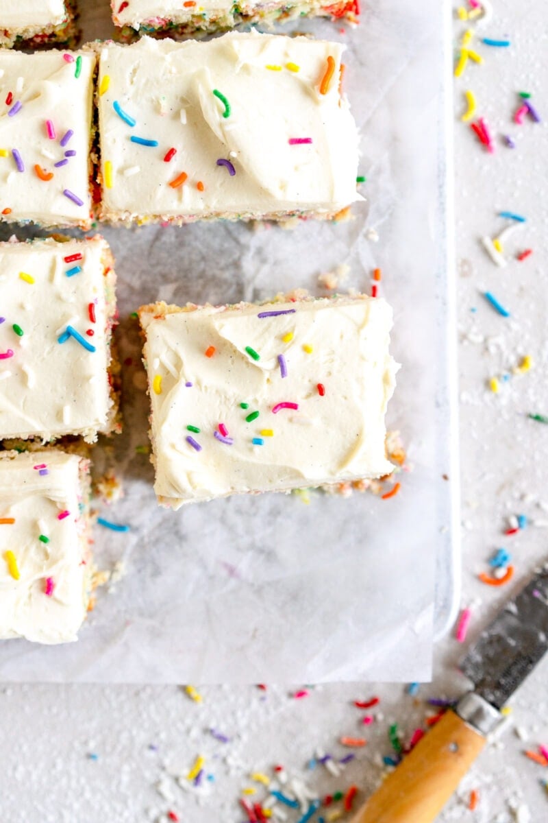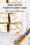 - Small Batch Vanilla Cake - This small batch funfetti cake is super easy to make. It comes together in two bowls and is quick to bake. I baked it in an eighth sheet pan which is my current favourite.