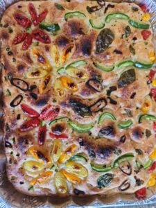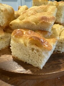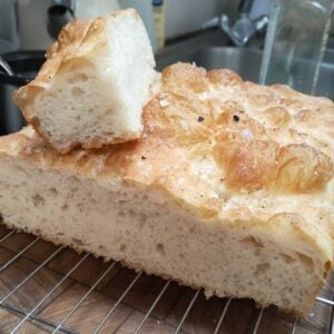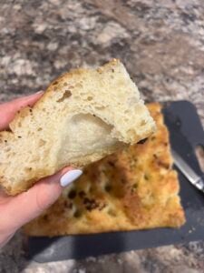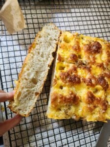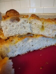 The best focaccia bread ever!! I had made it I. A half sheet for pizza and in a 9x13 pan. This is what everyone loves is it’s light, airy, crispy on the outside soft on inside. The perfect bread.
