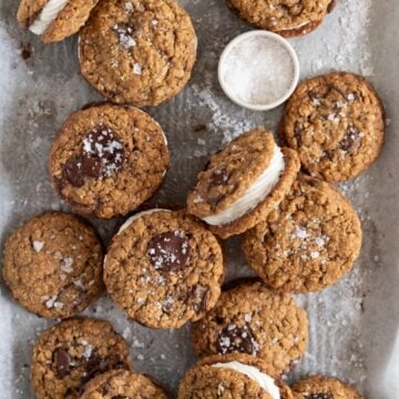 These are absolutely amazing with the filling (even a friend who claims not to like icing loved them), but without the filling they’re my go-to oatmeal chocolate chip cookie. I always have some of the dough in the freezer for cookie emergencies 🙂