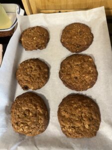 I am not a baker, at ALL, but something about these biscuits got my attention on Instagram. Let me just say that these are absolutely phenomenal and I’m so glad I followed my instincts and made a double batch. It was definitely worth the extra pans to toast the oats and brown the butter and milk powder. A few notes for my fellow baking idiots: brown the butter on medium like Erin says, I was being timid and kept the temp low and it took forever. Use a cookie scoop like Erin says or at least a couple of spoons because the mix is very firm and sticky and I thought I could/should scoop it with my hands like meatballs? Idiocy. I don’t own a wire rack so cooled them completely on the tray and they turned out fine, no soggy bottoms. I’m in Australia and used traditional rolled pats which I think is equivalent to old fashioned pats in NZ, anyway the texture was great, crisp edges and a toothsome slightly chewy middle so it has my endorsement! Excuse the terrible photos, I’m also not a photographer in addition to being not a baker. I used a combo of dried cranberries and dried tart cherries as I had no raisins so the fruit looks a little different to what you might expect. Have passed the recipe on to my mum and my sister who were lucky enough to be beloved enough by me to receive some.