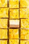 - Add the curd to the top of the cheesecake - after the filling goes in, you then swirl the remaining curd over the surface of the cheesecake. This process is super easy and really fun to do. I just use a knife to swirl it in there!