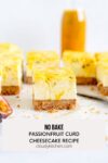 This Easy Passionfruit No Bake Cheesecake has a graham cracker cheesecake crust, a passionfruit cheesecake filling and passionfruit curd topping. This is the perfect easy dessert with no baking required.