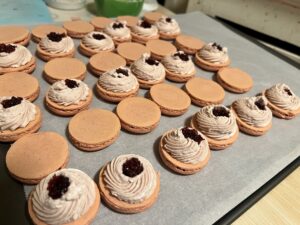 - The White chocolate buttercream can be a little soft when you first add the chocolate. Popping it in the fridge for 10-15 minutes will help to firm it up, or you can pipe the macarons then rest in the fridge for an hour or so to help firm it up.
