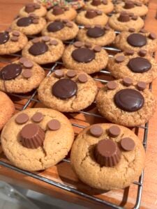 - Mini Peanut Butter Cups or Hershey's Kisses for pressing onto the cookies (recipe makes about 28 cookies)