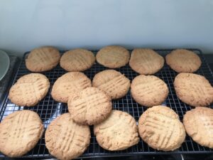 - Leave the cookies to cool on the pan for 10 minutes, then transfer to a wire rack to cool completely.