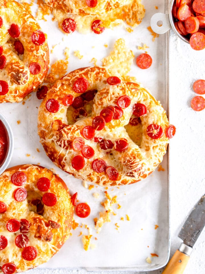 Hi hi! Just popping in to share this soft pretzel recipe with you! If you haven't made your own homemade pretzels before now is a great time to start - they are a super fun from scratch baking project, and the dough is super versatile. I use this one master dough to make my Pizza Pretzels, Homemade Pretzel Bites, and Chewy Pretzel buns, so you can make one batch and finish these however you like!
