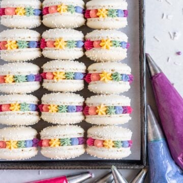 Rainbow Macarons (Vanilla Bean Macarons with Vanilla Bean Swiss Meringue Buttercream)