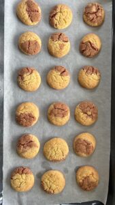 - Roll each ball of dough between your hands to form a ball, then roll in the sugar before placing on the baking sheet. Leave any mixture that you are not baking off just yet in the bowl and scoop just before baking.