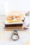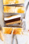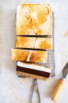 - Remove the bars from the loaf pan using the parchment handles. Remove the parchment paper, and torch the top and sides of the bars if desired.