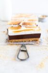 - Toasted Marshmallow Layer - It's not S'mores without marshmallow! I spread a layer of marshmallow over the chocolate filling then torched it to finish.