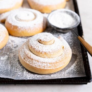 Sourdough Mallorcas from Bryan Ford's new book, New World Sourdough. These are a sourdough variation on Pan de Mallorca, and are sweet and lightly flavoured with lemon. They are the perfect sweet treat, and have the most amazing sourdough flavour.
