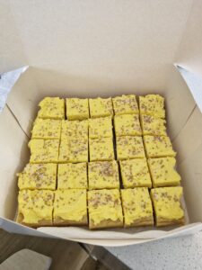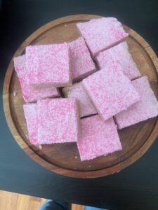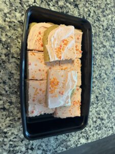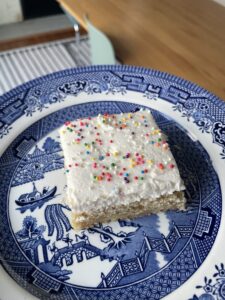 Honestly, can’t say enough good things about these bars. Not too sweet, so soft but gods their shape. I did use cream cheese buttercream instead of regular American buttercream which I also think added a nice little tang.