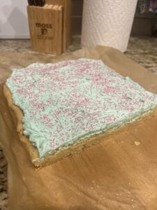 - Transfer the frosting to the cookie bars and swoop it on using the back of a spoon or an offset spatula. Add sprinkles if you like.