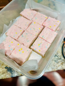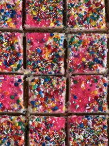 I cannot stop making these! They’re simple but taste like you worked really hard. And the way you can experiment with different colors, flavor extracts, and sprinkles in the frosting makes it feel like a new bar every time! Instant classic!!