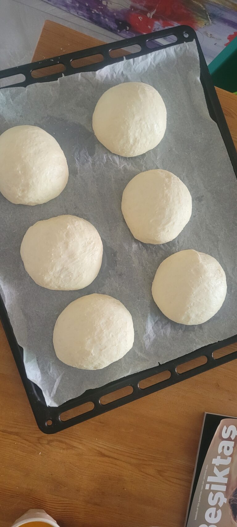 - Turn the dough out onto a lightly floured surface. If you are using rings for your buns (I used 100mm rings for 90g buns), grease them lightly.