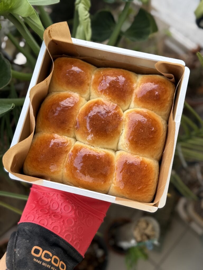 I used 2/3 the recipe to make into 9 bread rolls fit in a 8” square pan.