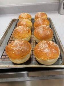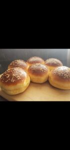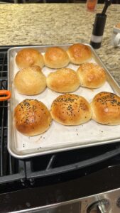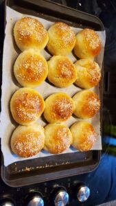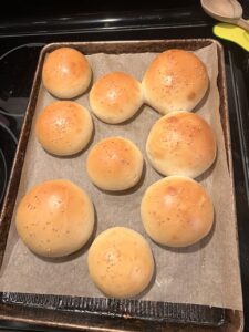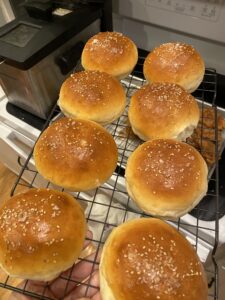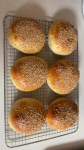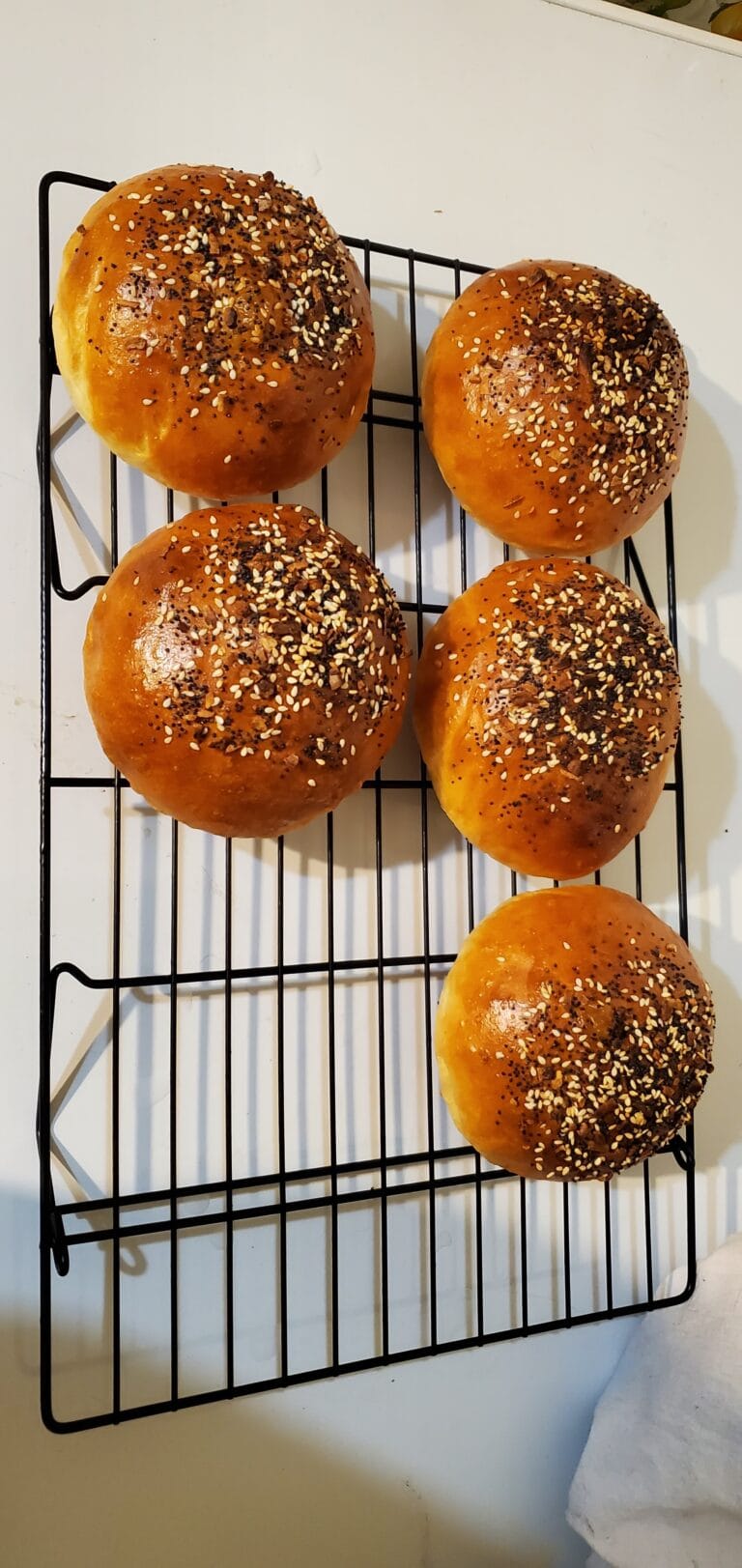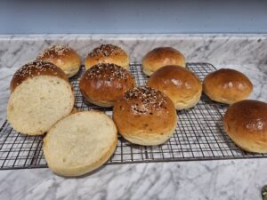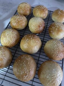 Remember that if you make the burger buns smaller, the rising time for the second proof will be different. I made these and divided them into 12 and the rise time was only about 45 minutes as opposed to 1 ½ hours so just keep an eye on them.