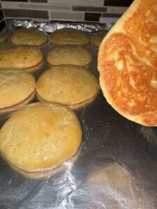 If you would like to get a head start on making these hamburger buns, you can do the first rise overnight. I like to make the dough then leave it to stand on the counter for about 15 minutes before putting it into the fridge to do the first rise. I tested this overnight but you could probably do as little as 3 hours in the fridge if you wanted to make the dough in the morning for later in the day.