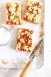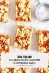 Tan Square or Tan Slice is a Classic New Zealand Caramel Bars recipe. It is super simple - comprised of a shortbread and a caramel filling. The shortbread is pressed into the pan as a crust, topped with the caramel, then additional shortbread is then crumbled over the top for a perfect, buttery textured slice.