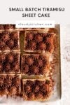 The full size version of this tiramisu cake makes a 9"x13" (20x30cm) cake. However if you were wanting to do a small batch version, you could do a half batch of the recipe and bake it in an eighth sheet pan. The method is exactly the same, it just uses half the quantity of ingredients. The quantities for a half size cake are: