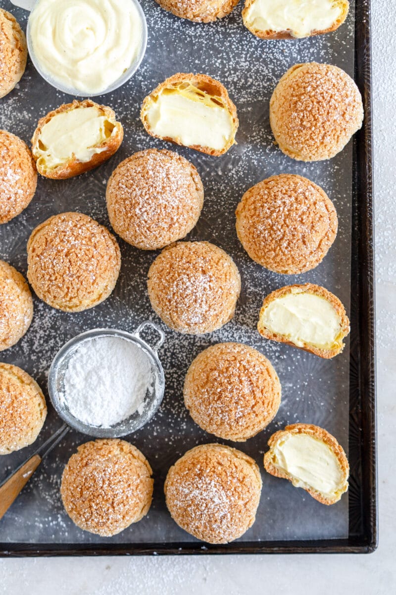 Vanilla Bean Cream Puffs (Choux au Craquelin)