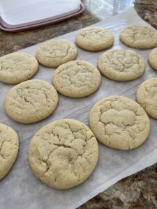 Scoop out the dough as directed, and roll in the sugar. Place on a parchment paper lined pan or in a lined airtight container and store in the fridge for up to 3 days before baking.