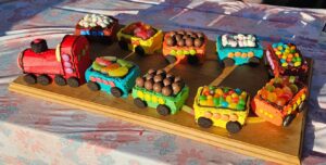 Just here for the third time to say this is a great cake for a kid's bday. You can bake the cake well in advance, and decorate later. For this one I made the carriages in mini loaf tins, and sculpted the train's engine. The cake is firm enough to cut into the shapes you need. A crumb coating of icing would have made icing them easier as some of the cake does come away when you try to ice it.